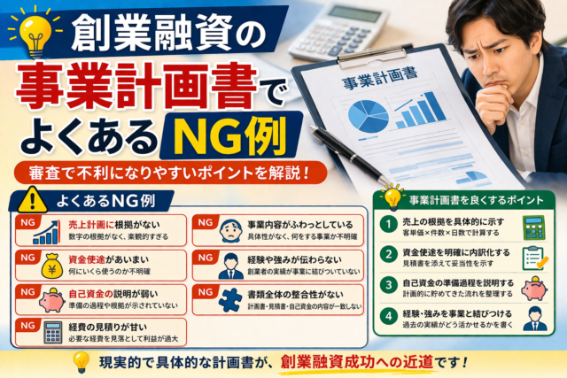 この記事では、創業融資の事業計画書でよくあるNG例を、実務目線でわかりやすく解説します。