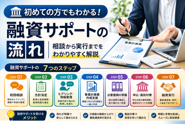 融資サポートの流れを、相談から実行までわかりやすく解説します。